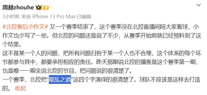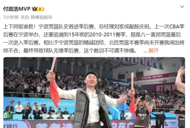 翻译过来就是,张庆鹏能力不行,用另一位媒体人“付政浩”的话来解释:相比于宁波男篮的精诚团结,北控男篮本赛季尚未开赛就闹出将帅不合,最终导致球队无缘季后赛,这个教训不可谓不惨痛。