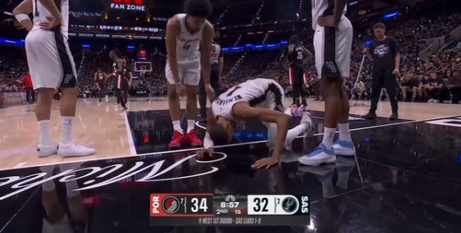 北京时间4月22日,在季后赛首轮第二场马刺主场对阵开拓者的比赛,文班亚马在对抗中下巴和侧脸重摔在地板上,随后返回更衣室检查,并且因为脑震荡保护协议提前退赛,离场之前仅3中1得到5分4篮板1助攻1盖帽。