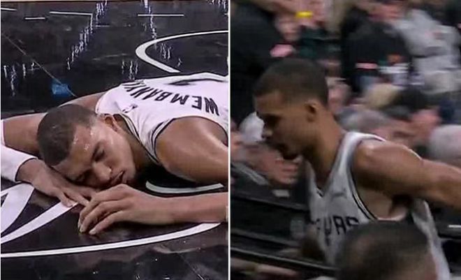 只是在第二节比赛当中,文班亚马因为在一次进攻中不慎失衡倒地,导致下巴和侧脸重摔地板上,随后他想起身却未能起来,坐在地上很痛苦,缓了很久文班亚马才起身返回更衣室。