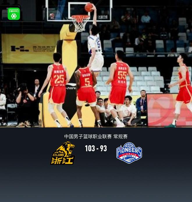 北京时间4月24日中国男子篮球职业联赛 常规赛,浙江浙商证券对阵天津先行者。半场广厦55-45天津,最终广厦103-93天津。