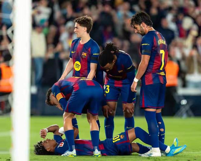 然而,在喜悦之中也夹杂着一丝令人担忧的插曲。在完成这粒关键点球的破门之后,亚马尔因伤无法坚持,遗憾地被替换离场。当看到这位为球队立下汗马功劳的天才少年捂着伤处缓缓走下球场时,全场球迷起立鼓掌,掌声中饱含着感激与关切。亚马尔的伤退无疑给球队蒙上了一层阴影,但他留下的这粒金子般的进球,已经为巴萨锁定了胜局。