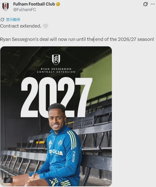 官方:富勒姆宣布和塞塞尼翁续约到了2027年。
