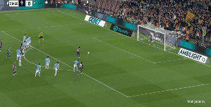 第56分钟,佩德里斜传,费兰破门。VAR介入,判定此球越位在先,进球无效。