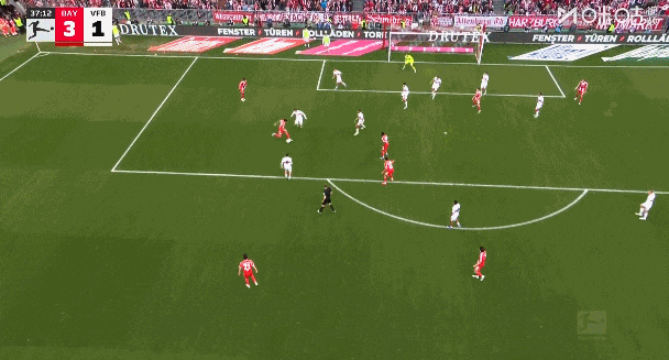 第37分钟,拜仁在斯图加特禁区内形成连续进攻,迪亚斯做球,阿方索·戴维斯起脚打门,皮球击中客队球员折射入网,收获重伤复出后首球,拜仁6分钟3球将比分改写为3比1!这粒进球也使得拜仁赛季总进球来到160球,打破2019/20赛季保持的159球的队史单赛季进球纪录。