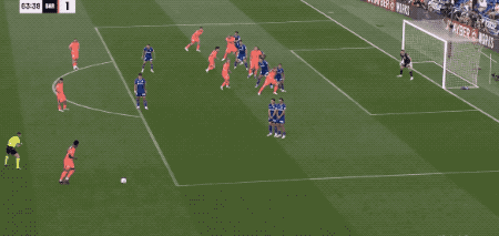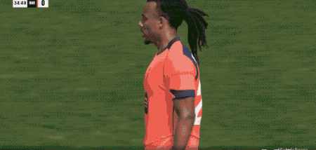 第68分钟,费尔明的过人动作相当潇洒,可惜射门时脚下打滑,皮球击中边网。